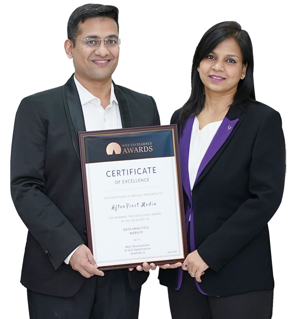This award was conferred on AfterFirst Media for their excellence in the “Website Development & SEO Optimization” project for their client BlueTide Analytics, in the Data Analytics category.